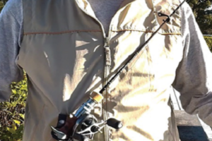 装着したOリング&フックの二点にロッドを装着すれば両手がフリー!!